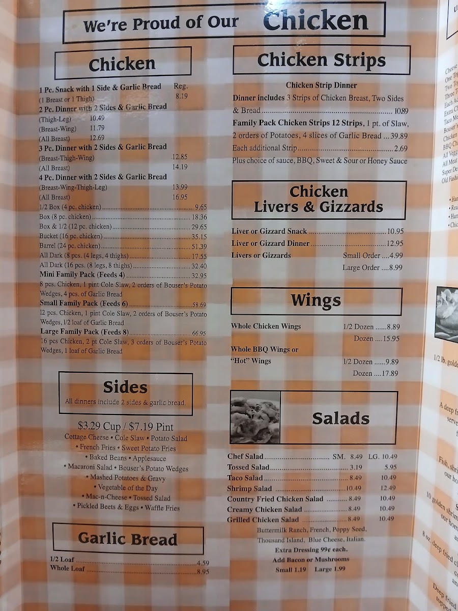 Bouser's Barn Restaurant & Catering offers a menu that feels like a welcoming mix of classic American comfort and familiar Mexican favorites, perfect for casual family dinners or a relaxed meal with friends. The menu strikes a balance between hearty home-style dishes and familiar bar & grill staples, creating an approachable dining experience that matches the warm, rustic atmosphere of the restaurant.